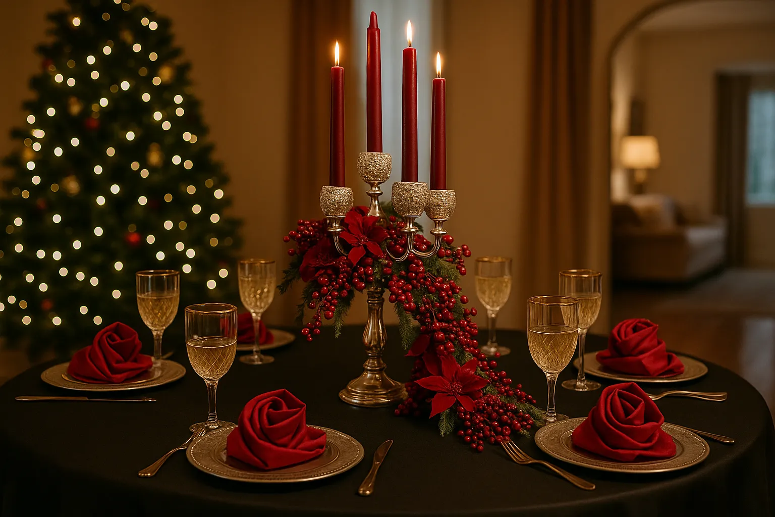 - Rhinestone Candelabras w/ floral accents and red candles