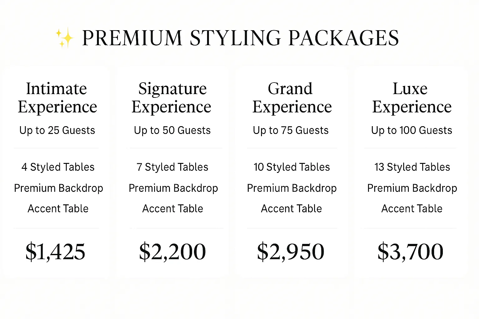 - 10ft x 12ft styled starting $375